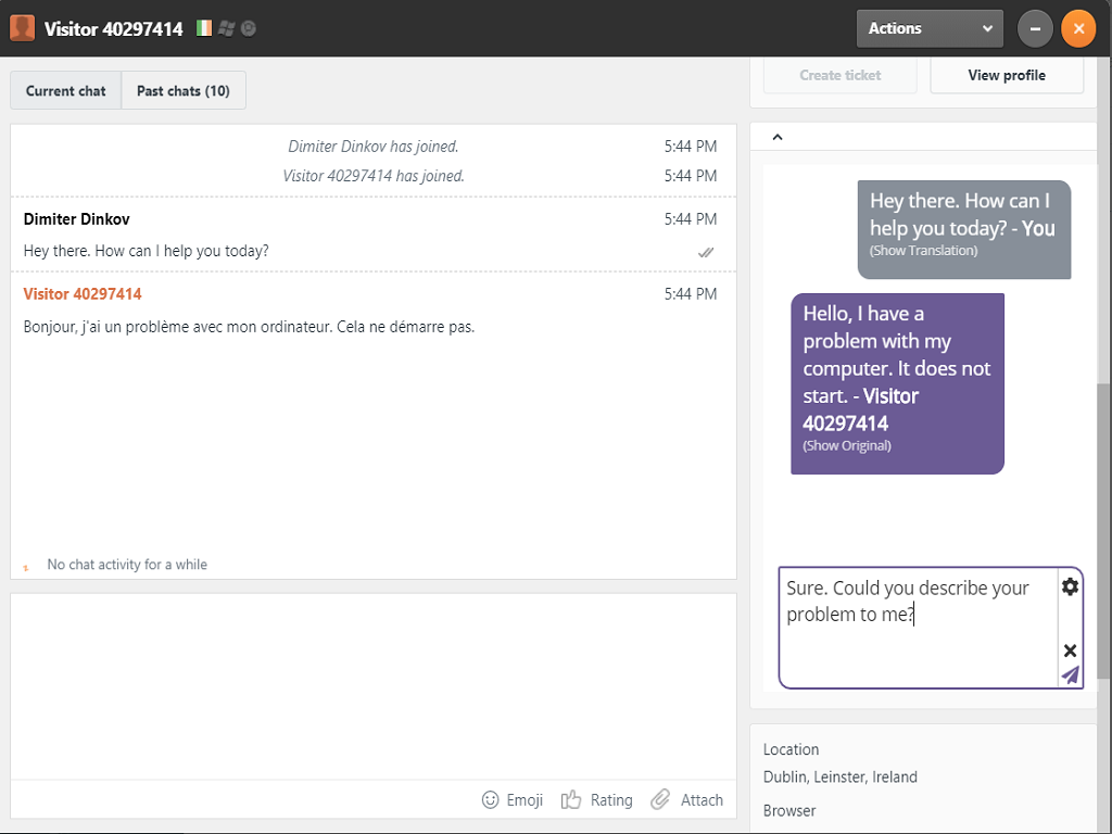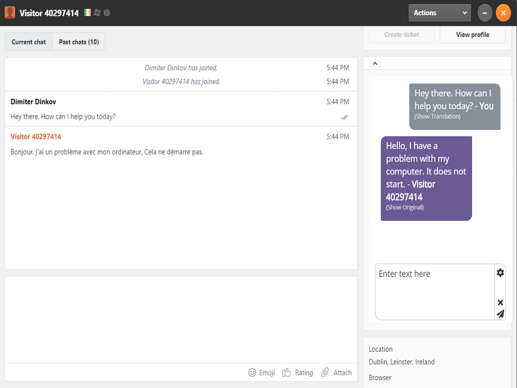 Translating a client message into your own language happens automatically behind the scenes. Just follow the installation instructions to set up the KantanStream App and once a client sends you a message it will be translated.