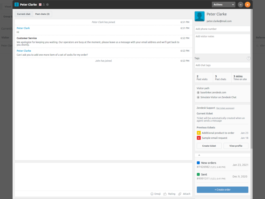 ➤ This is a free BaseLinker add-on that shows the customer's orders related to a given email address directly in the Zendesk panel view and one click takes you to the correct order card in BaseLinker.➤ Save the time so far spent on switching between your inbox and order list.➤ Forget about the exhausting order database investigation - your customers will be answered sooner.➤ Useful option - directly from the 'BaseLinker for Zendesk' you can create a new order for a given customer.
