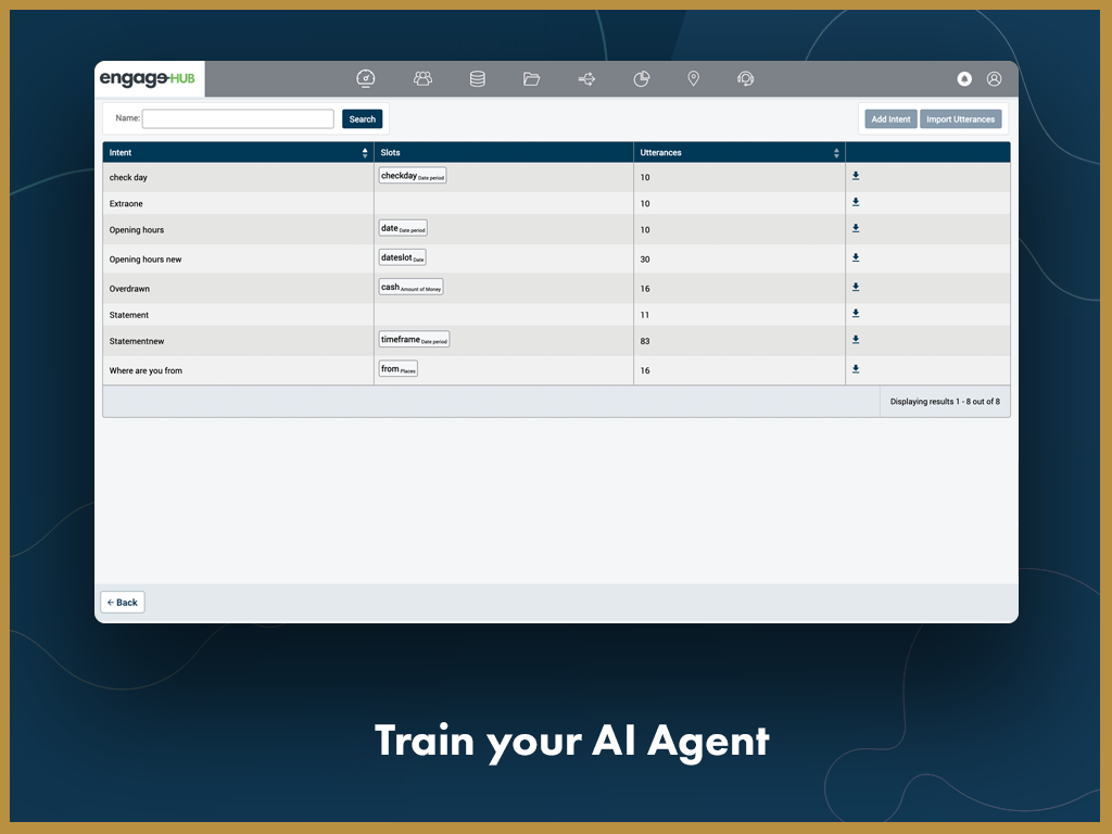 Engage Hub’s AI-powered Agent uses our native Natural Language Processing (NLP) engine, with deep real-time integrations, to not only understand but resolve your customer’s queries – deflecting calls and freeing agents to deal with more complex queries.