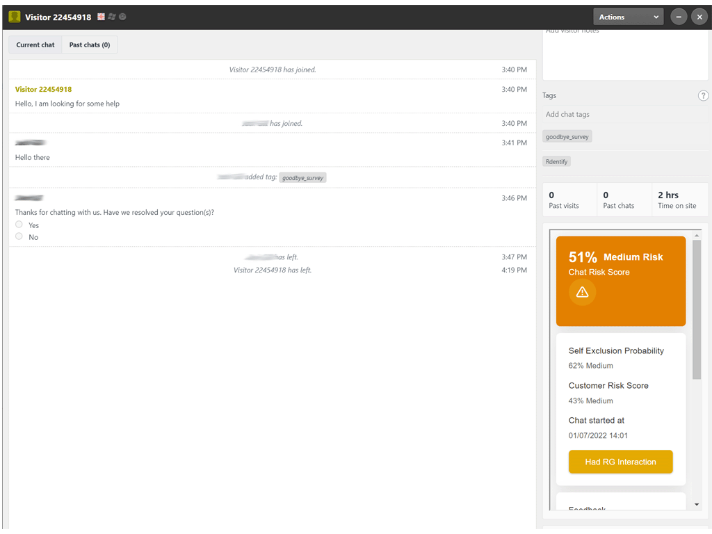 Rdentify also analyses customer sentiment, our Customer Frustration score, together with our conversation tagging system assists businesses to properly understand the source of customer frustration and allows for more informed QA of Customer Support Agents.