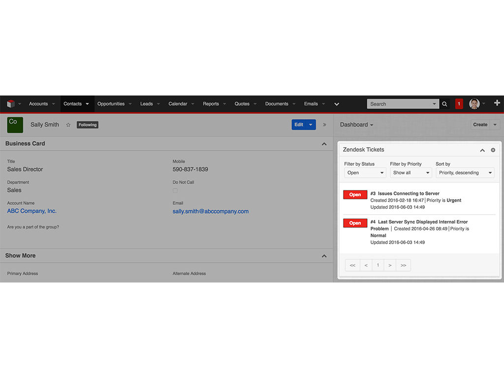 You can filter and sort to get to exactly what you need to see without having to flip back and forth between Sugar and Zendesk. You can click the