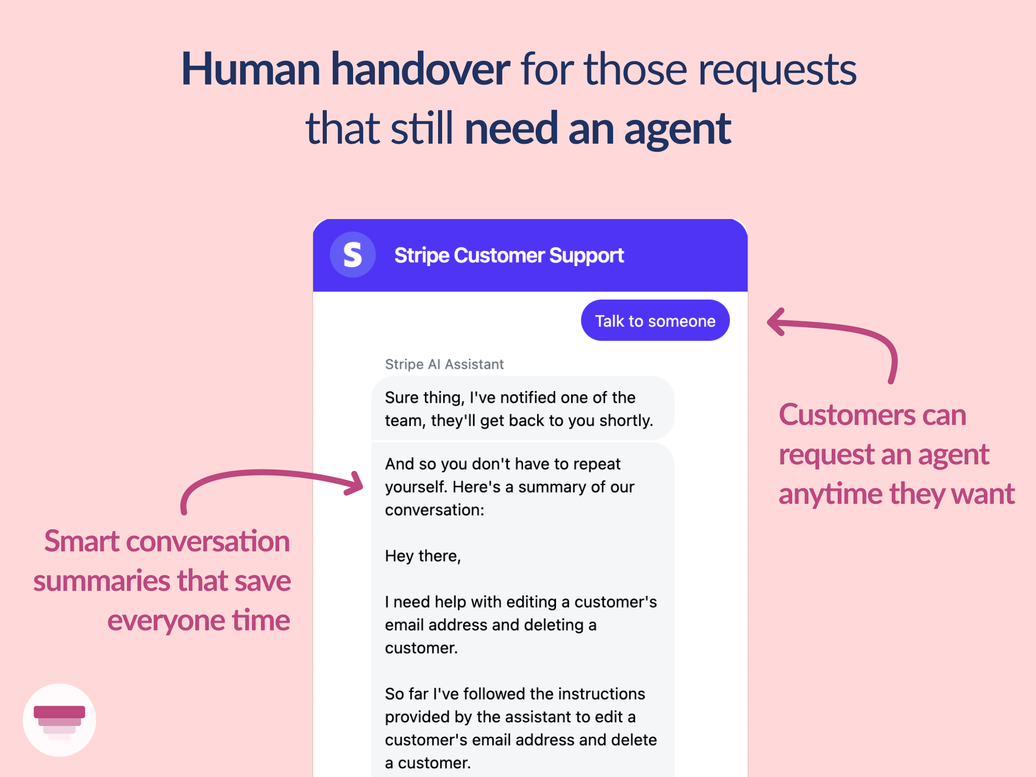 If a customer needs to speak to a person, they just ask & are passed to your agents, all within Zendesk Messaging.