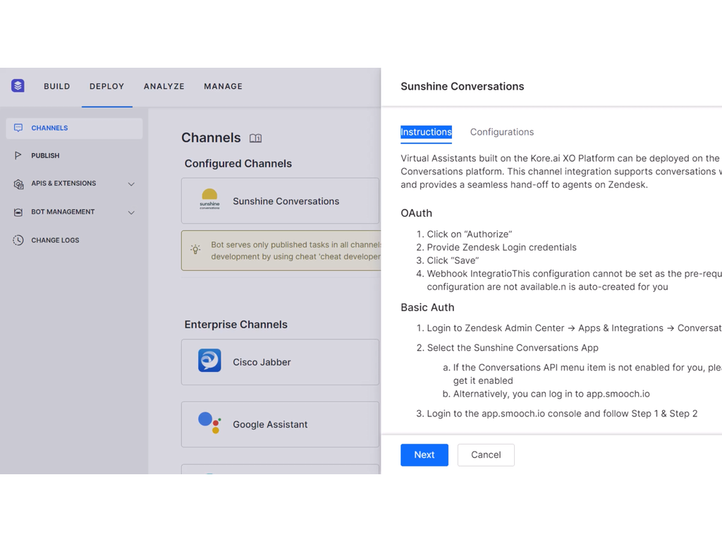 Authorizing the Kore.ai Integration to Sunshine Conversations