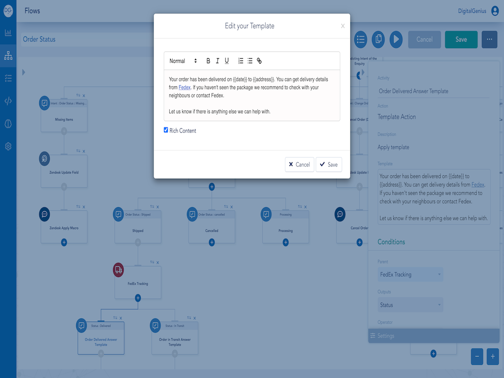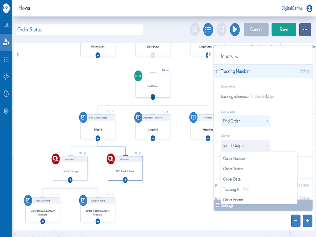 - Build your first flow by consulting our documentation docs.digitalgenius.com
