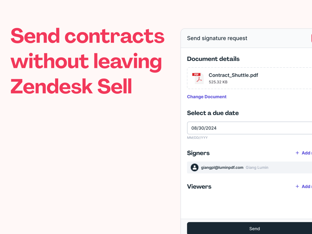 Streamlined Signature Processes: Create, send, sign and manage contracts directly in Zendesk Sell, without switching between different applications.