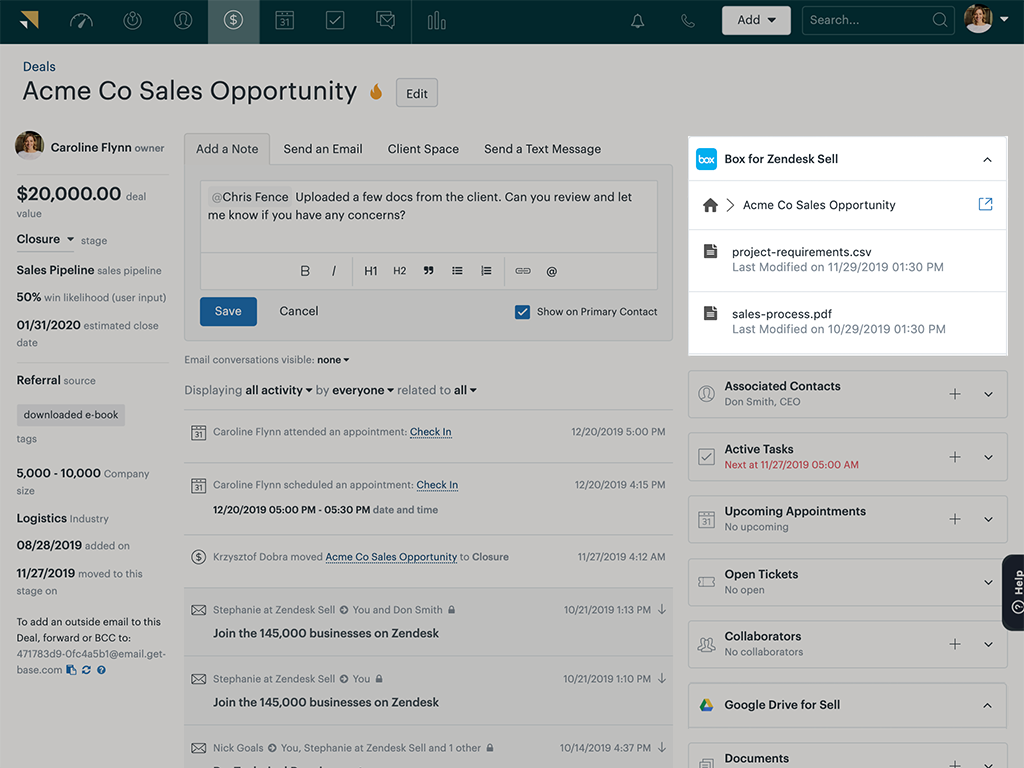 - Employees who don't have access to Zendesk Sell can sync documents to deal cards in Sell using Box.Learn about Box here.