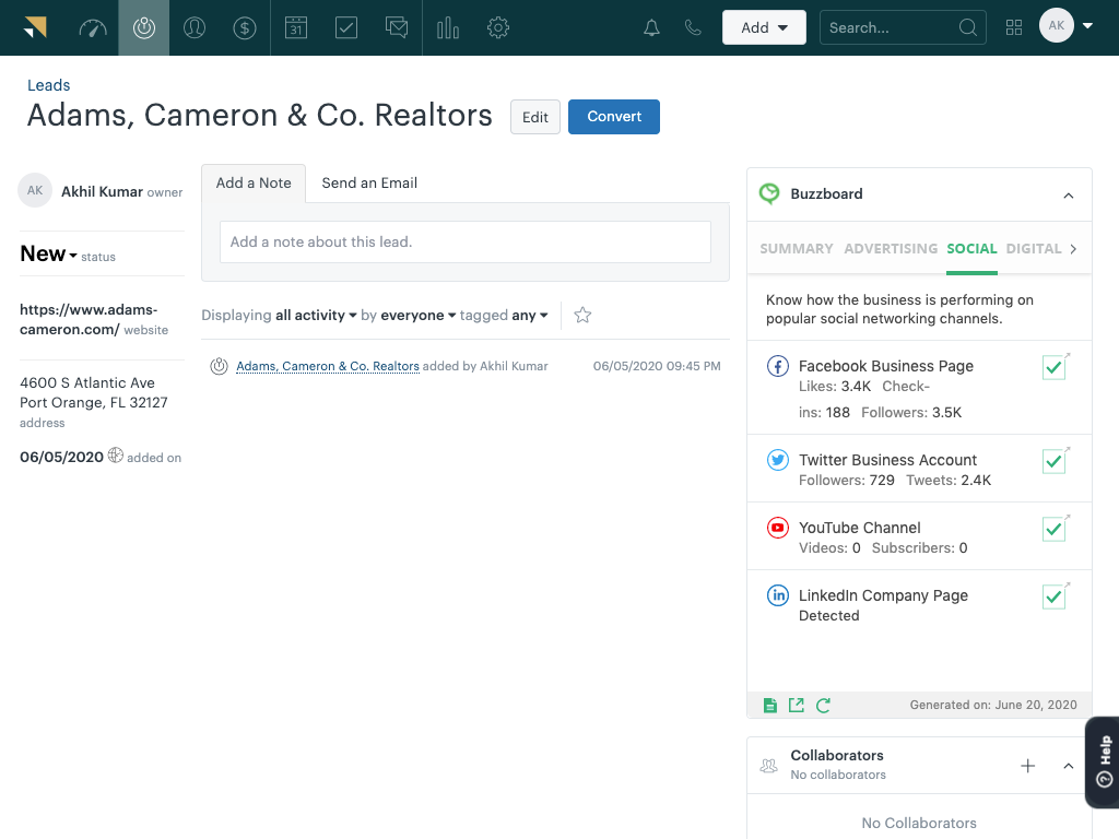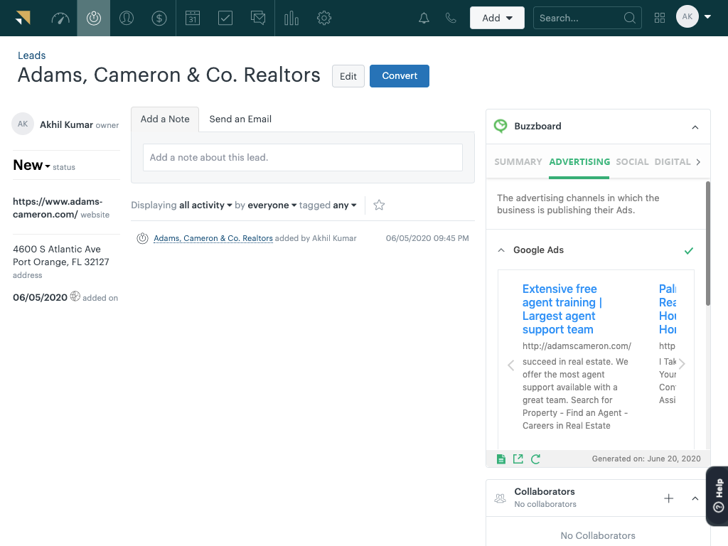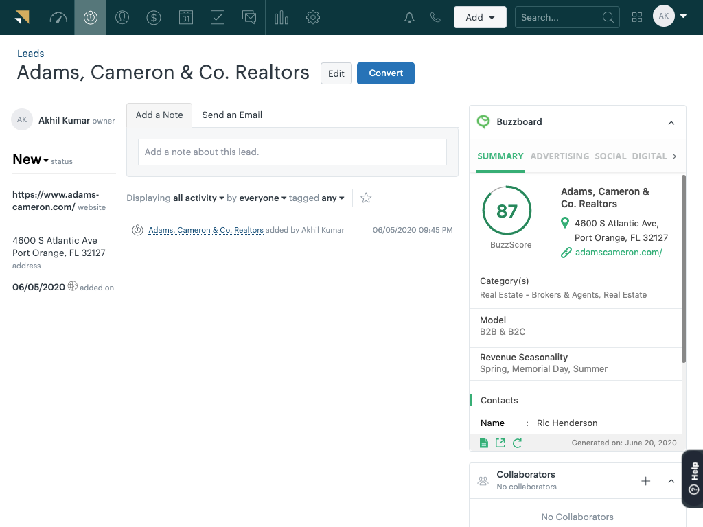 BuzzBoard for Zendesk Sell delivers BuzzBoard’s customized, AI-driven data and insights about small business leads—their tech stack, resources, competition, hiring plans, market opportunities, etc.—directly into Zendesk Sell, empowering your sales advisors to easily identify the right solution for the right customer at the right time. BuzzBoard provides you with deep, accurate data for every small business lead within minutes, cutting down on your pre-call prep, and allowing more time for selling. With BuzzBoard you can: