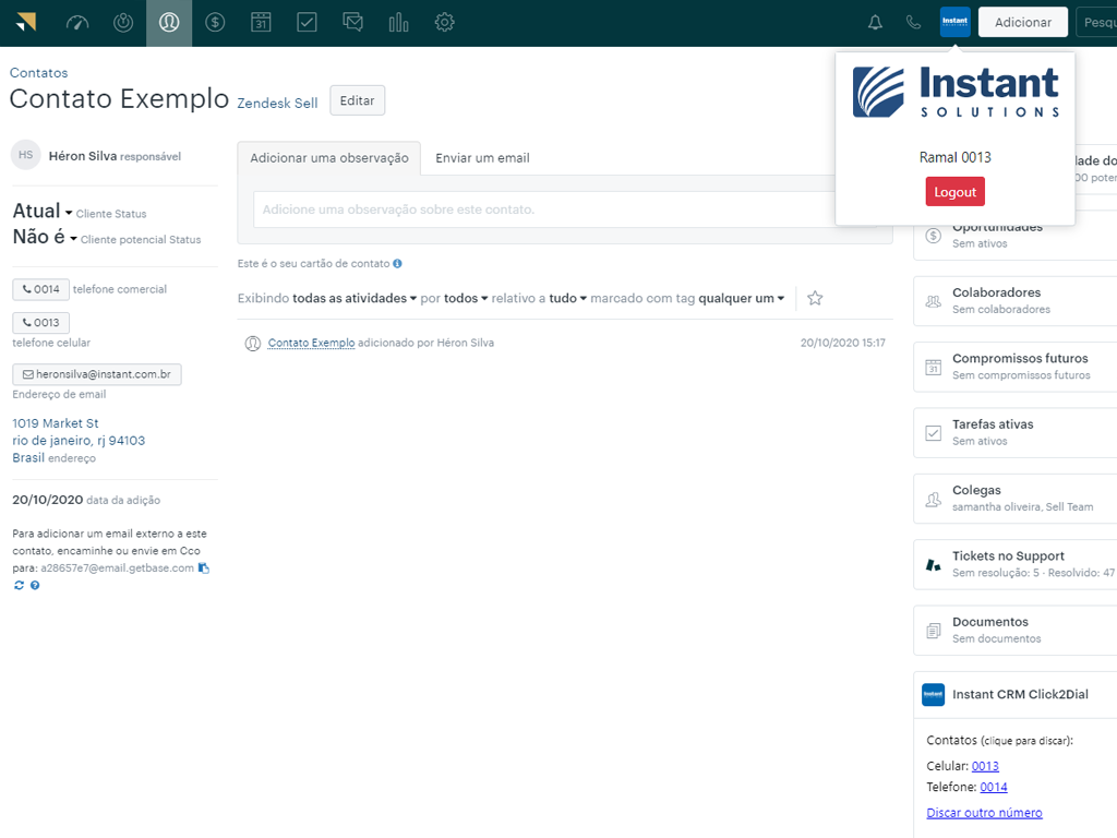 Instant CRM Click2Dial é um ferramenta que automatiza o registro de chamadas saintes do Zendesk Sell através da Plataforma multicanal de atendimento da Instant.