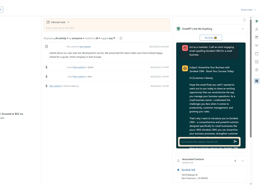 Introducing ChatGPT | Ask Me Anything for Zendesk Sell: your ultimate support agent sidekick!