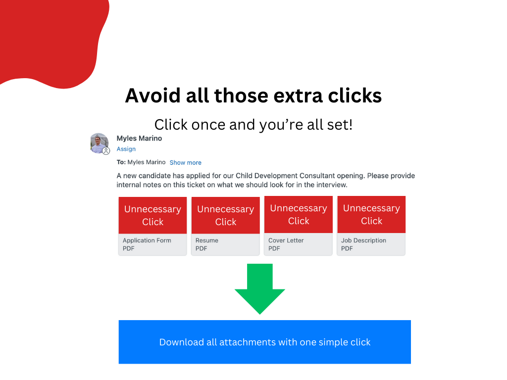 Join dozens of other organizations downloading hundreds of attachments each month inside of their agent view without the need to click each individual attachment.