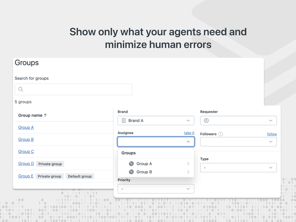 - 🔍 Stay Focused: Automatically display only the relevant brands and groups for each ticket, tailored to your agents’ profiles.