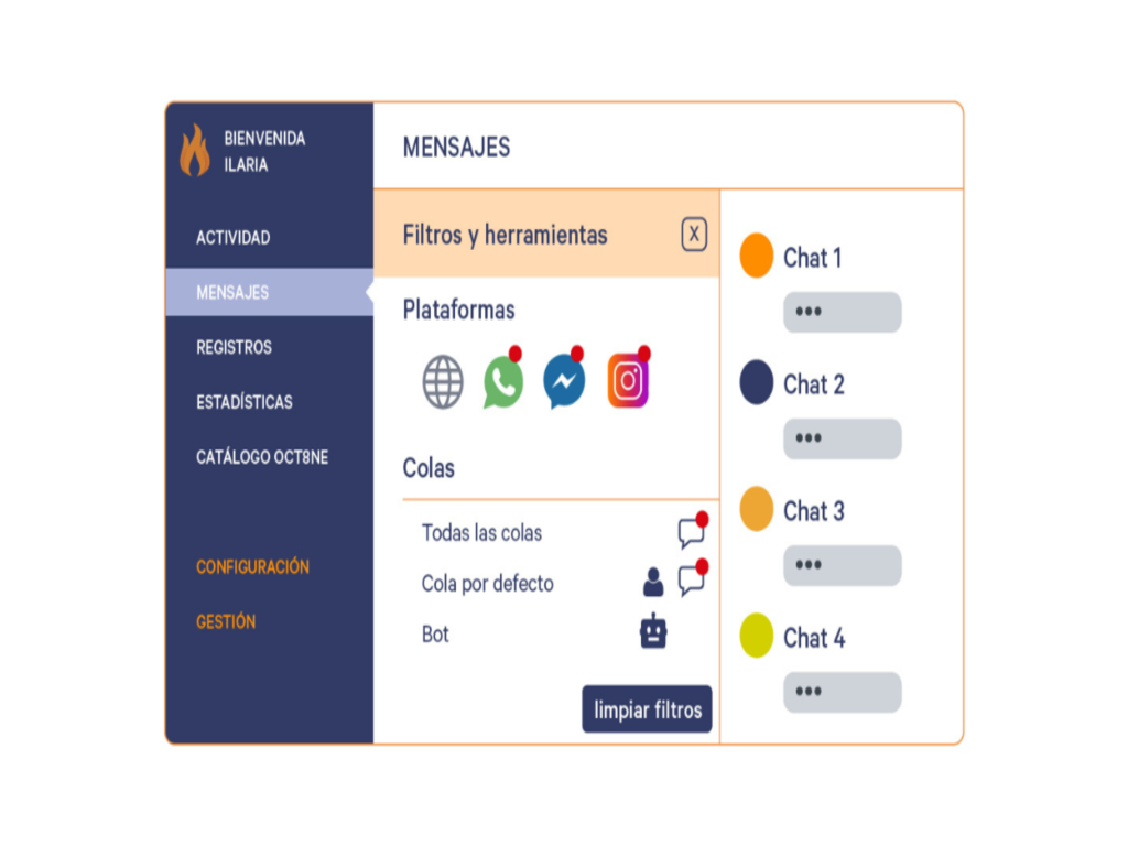 Additionally, Oct8ne stands out for its integration with platforms like WhatsApp, Instagram, and Facebook, facilitating connection with customers through their preferred channels.This versatility enables efficient and centralized conversation management, ensuring smooth and personalized communication across all contact channels, further increasing conversion possibilities.