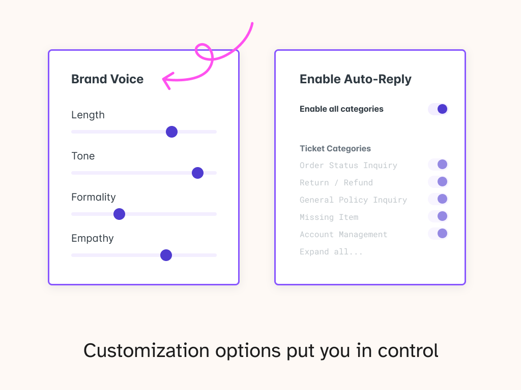 Customization settings ensure all replies are consistent with your brand voice and communication preferences. QA all replies in real-time, and see just how much power AI can add to your support team.