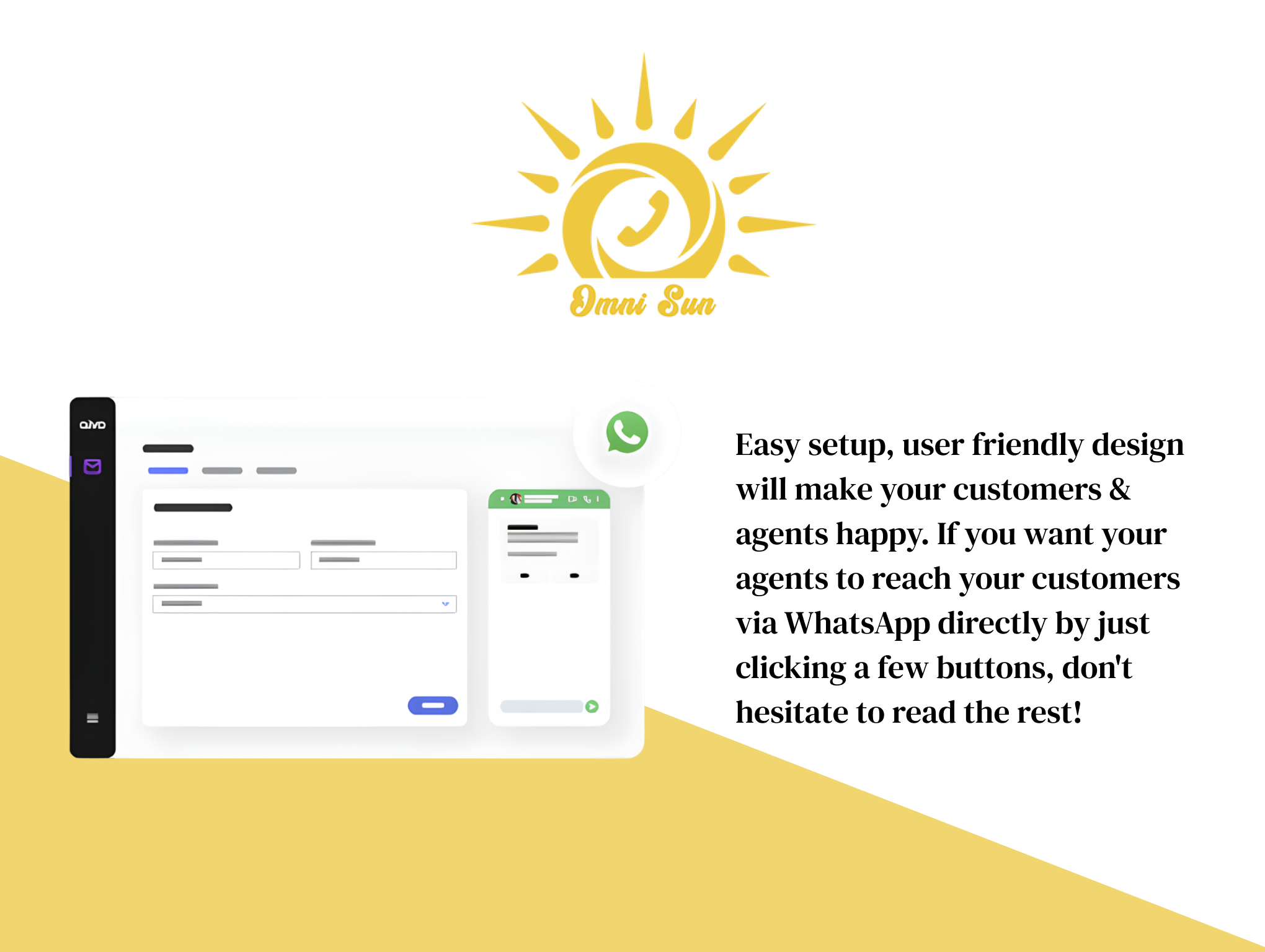 Easy setup, user friendly design will make your customers & agents happy. If you want your agents to reach your customers via WhatsApp directly by just clicking a few buttons, don't hesitate to read the rest!