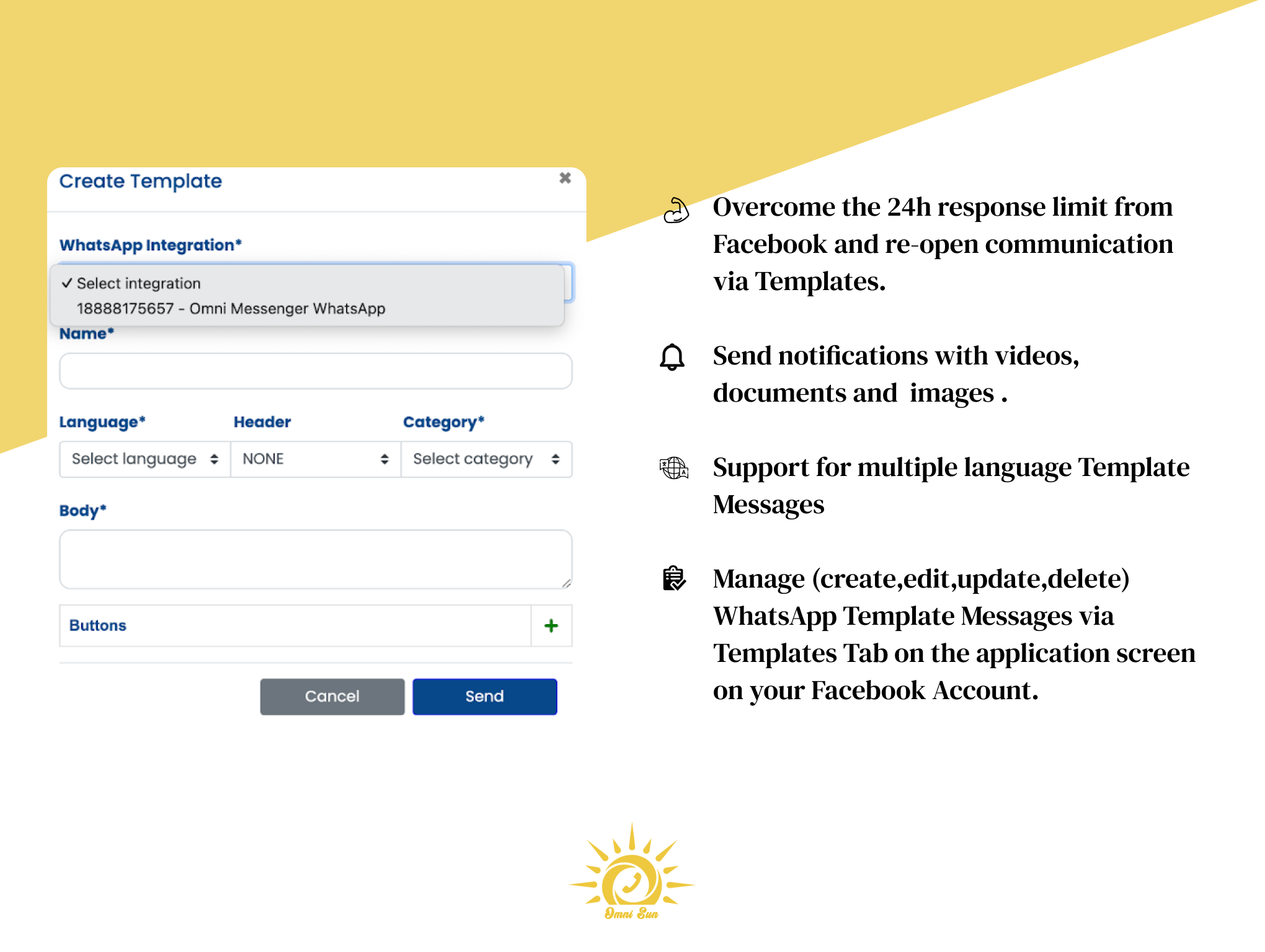• Supports template messages in multiple languages.