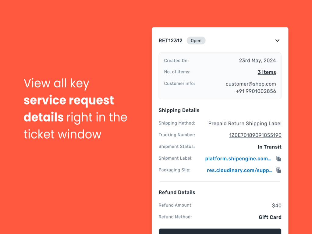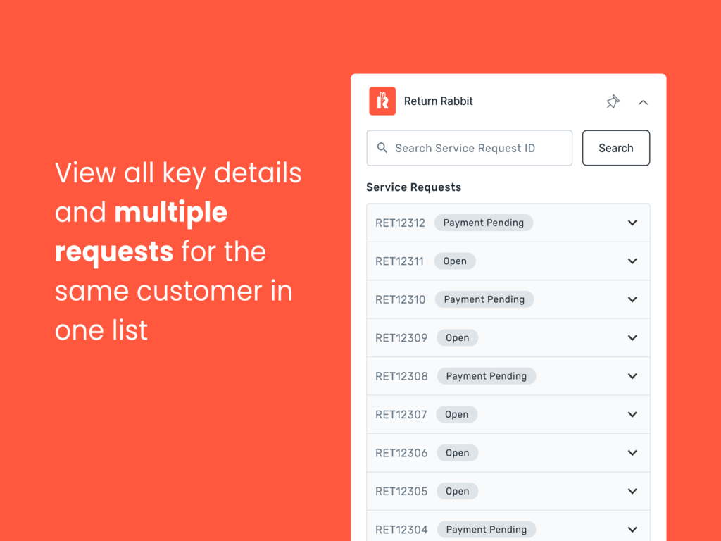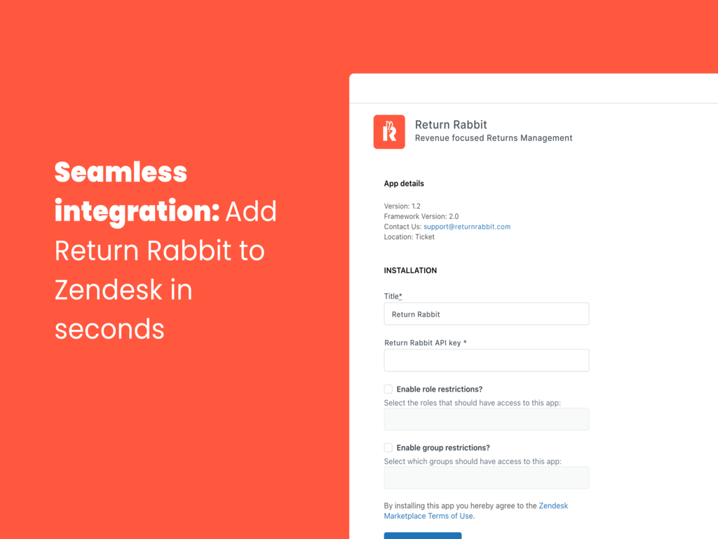 Automate returns for exchange, store credit, or refund with a brandedportal Pre-paid labels and tracking for major carriers around the worldExchange for higher, same, and lower-priced products Proprietaryexchange product recommendations and exchange incentives Actionableanalytics & ROI-based reporting Integrating Return Rabbit with Zendeskseamlessly maps post-purchase, returns, and exchanges data to customercontact information. This enables your support team to access acustomer’s complete journey with a single click, leading to fasterticket resolution and improved customer experience.