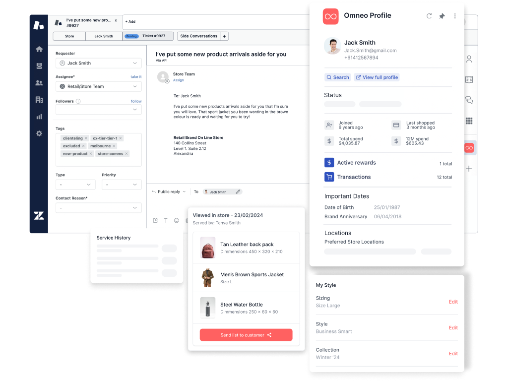 Specific tags and attributes from Omneo Profiles can be pushed to Zendesk, to ensure inbound tickets are routed to the correct teams.