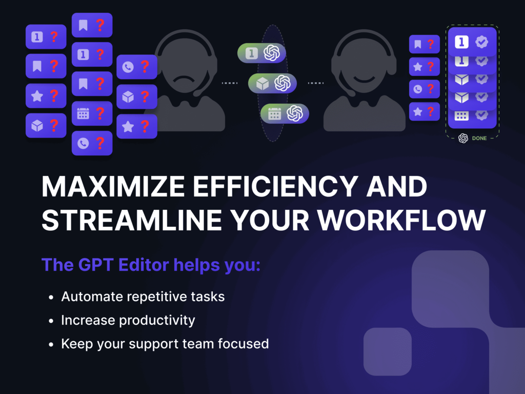 The GPT Editor is a powerful tool that lets you effortlessly create AI-powered text directly within Zendesk. It allows you to save your instructions and reuse them with a single click.