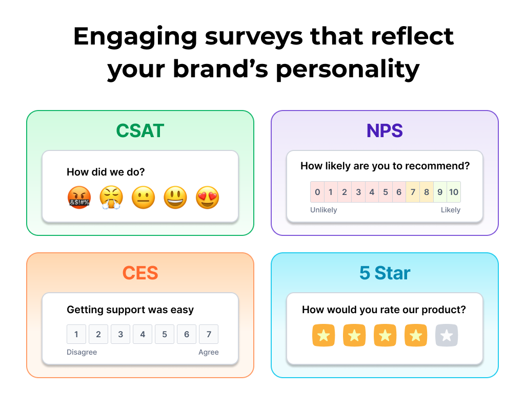 Easily add popular customer feedback surveys to any Zendesk workflow with a no-code setup that takes less than 5 minutes.