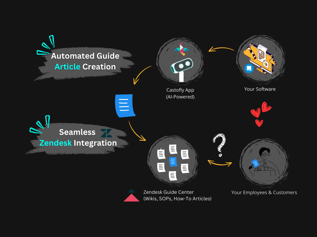 Are you always answering questions, training or hopping on “quick” calls? Need to show a teammate how to run a report? A customer how to log in? Castofly was born to address this challenge. With Castofly you can create instant step-by-step instructions for sharing with your customers and team. Castofly automatically creates highlights and call-outs for your workflows. You can make guides directly from your browser and share them in seconds - our average creation time is 2 minutes or less.