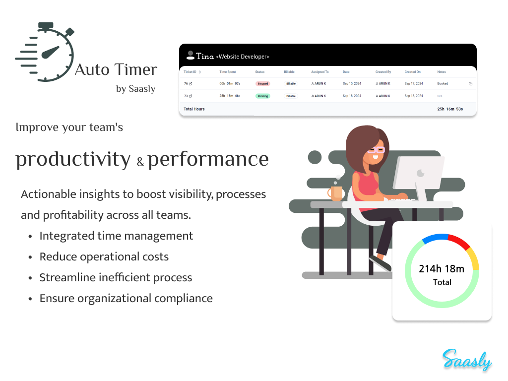 Track the exact time agents spend on tickets using the Auto Start Timer app.