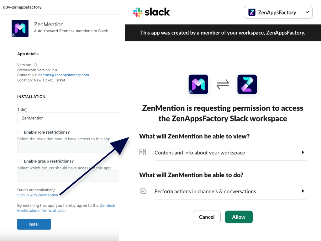 Privacy✔ No data storage by ZenAppsFactory✔ All transfers between Zendesk and Slack are secured with OAuth