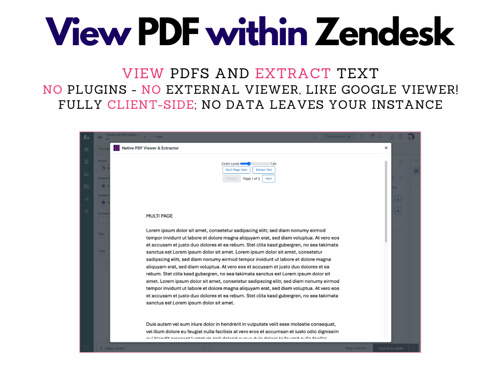 View PDFs natively in Zendesk & extract text. Fully client-side.