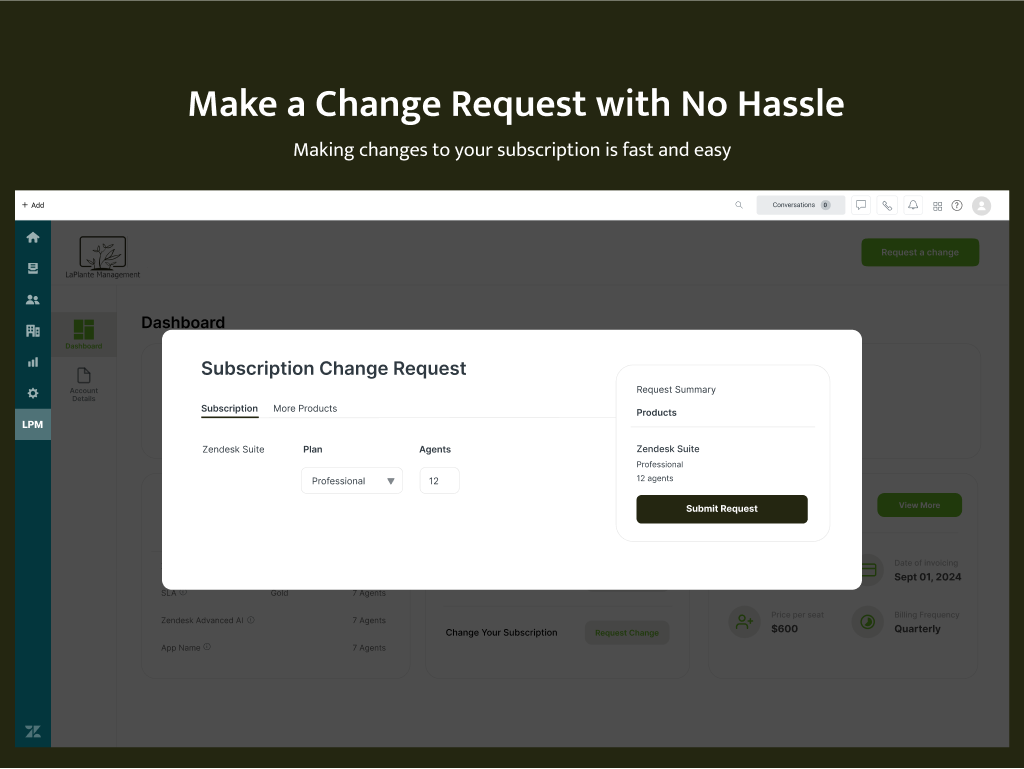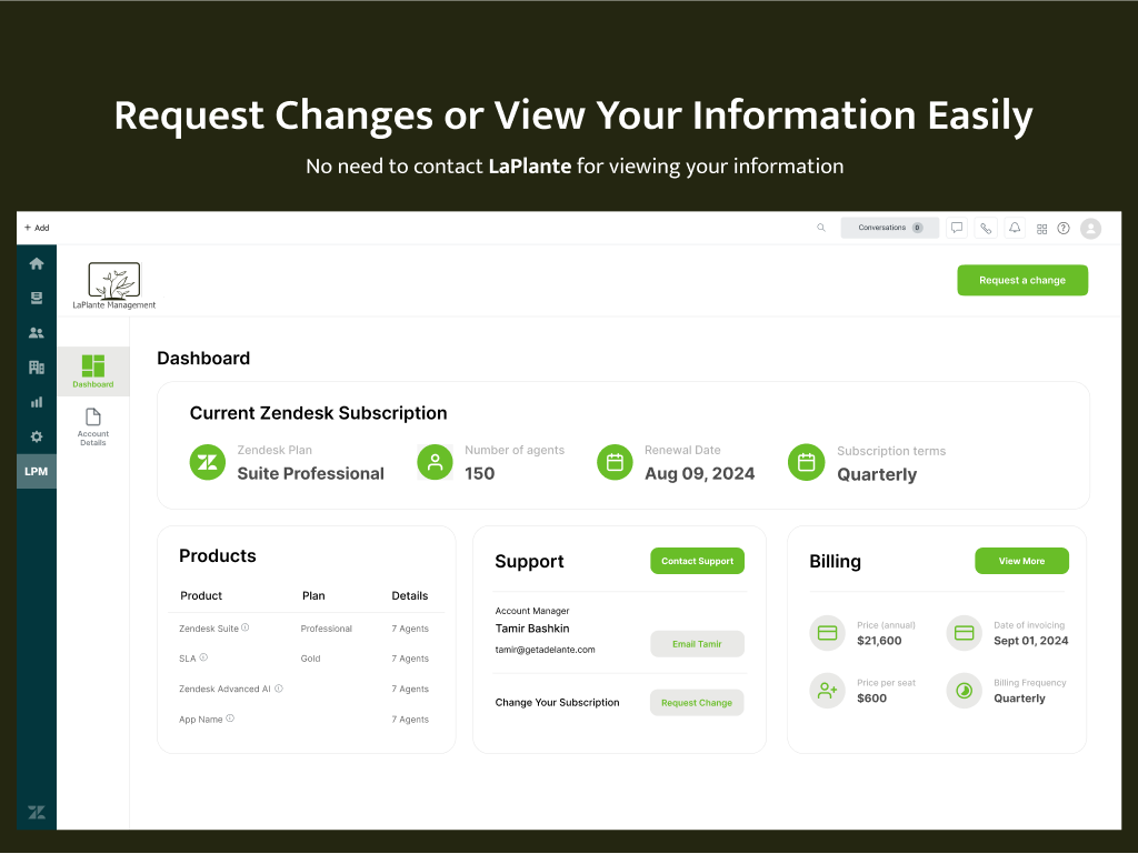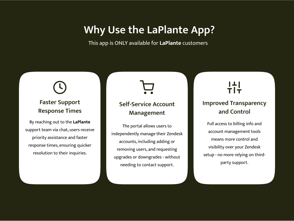 Manage your Zendesk subscription easily via the new LaPlante self-service portal.