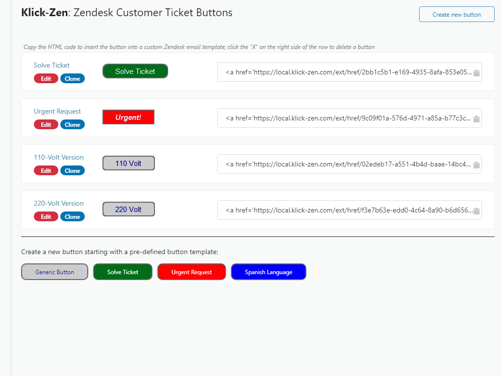Add a button to your Zendesk automated email response templates, or have your agents insert a button directly into a Zendesk comment right from the Klick-Zen toolbar in the ticket editor.