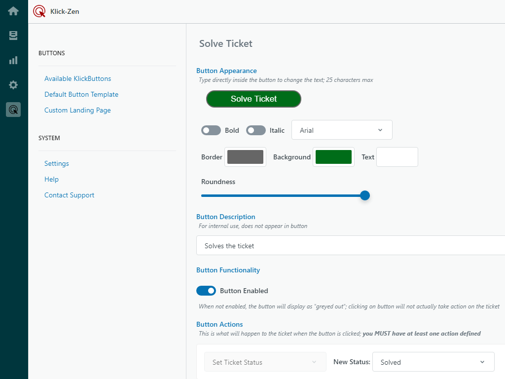 When a button is clicked by a customer, actions can be taken on their ticket automatically, without the customer even having to log in to your support center. Your button can perform actions such as: