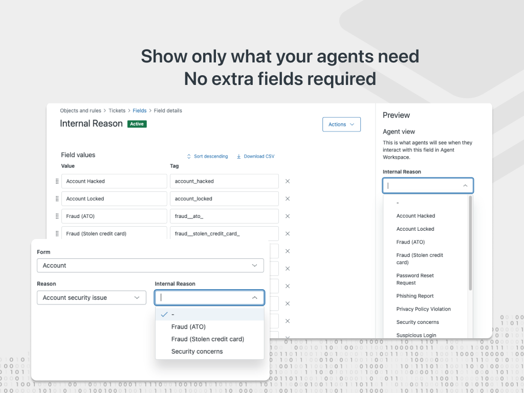 • Minimize agent errors by showing only relevant options during ticket handling.