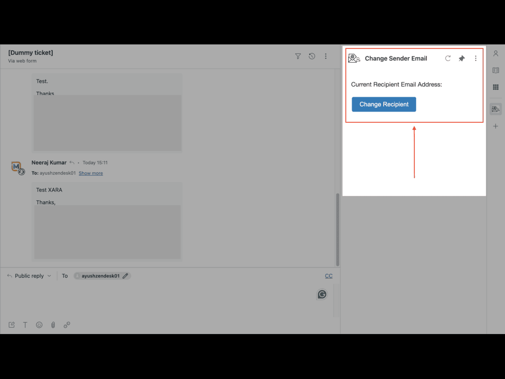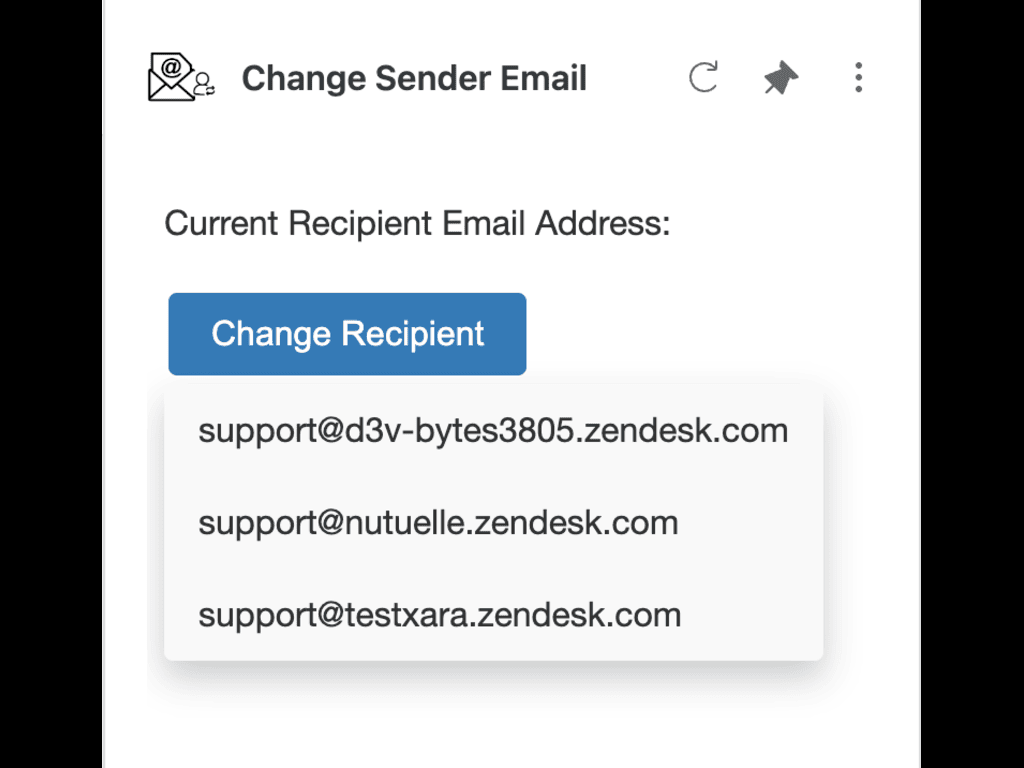 Overview:The "Change Sender Email App" is designed to streamline the support process for agents by allowing them to easily change the email address they are using to respond to customer tickets. This feature ensures that agents can maintain professionalism and consistency in communication by selecting the most appropriate email address from a predefined list of support email addresses available within Zendesk.