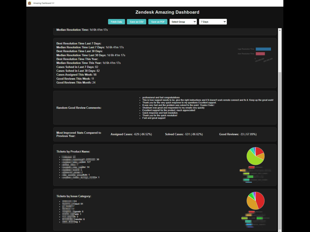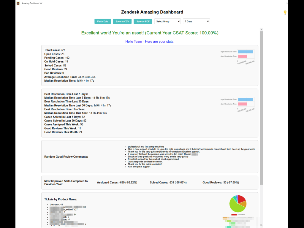 Dashboard for team ticket statistics in Zendesk.