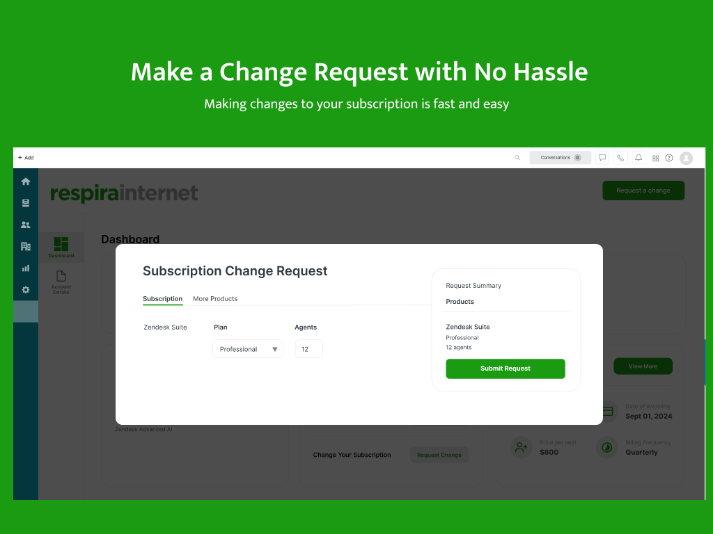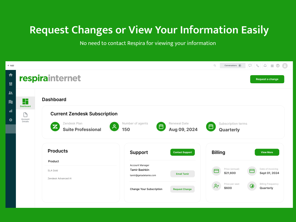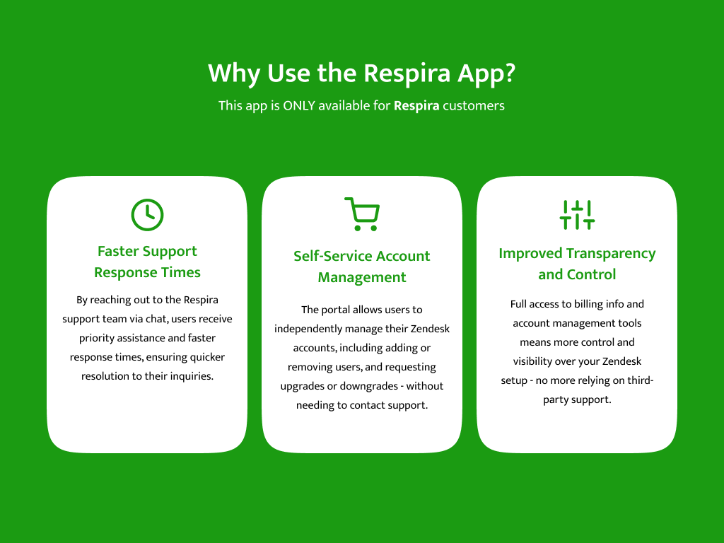 Manage your Zendesk subscription easily via the new Respira self-service portal.