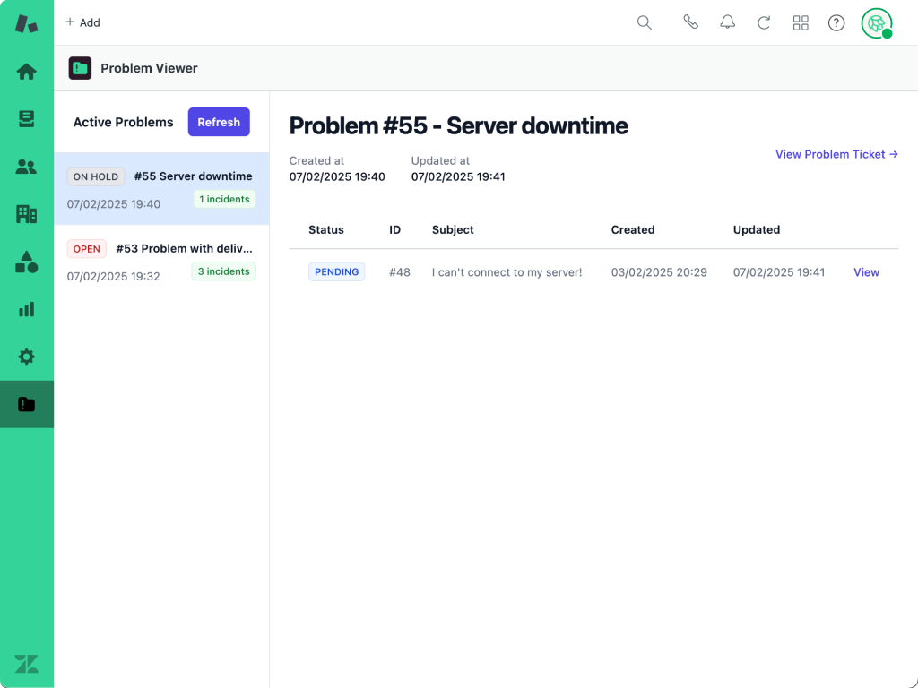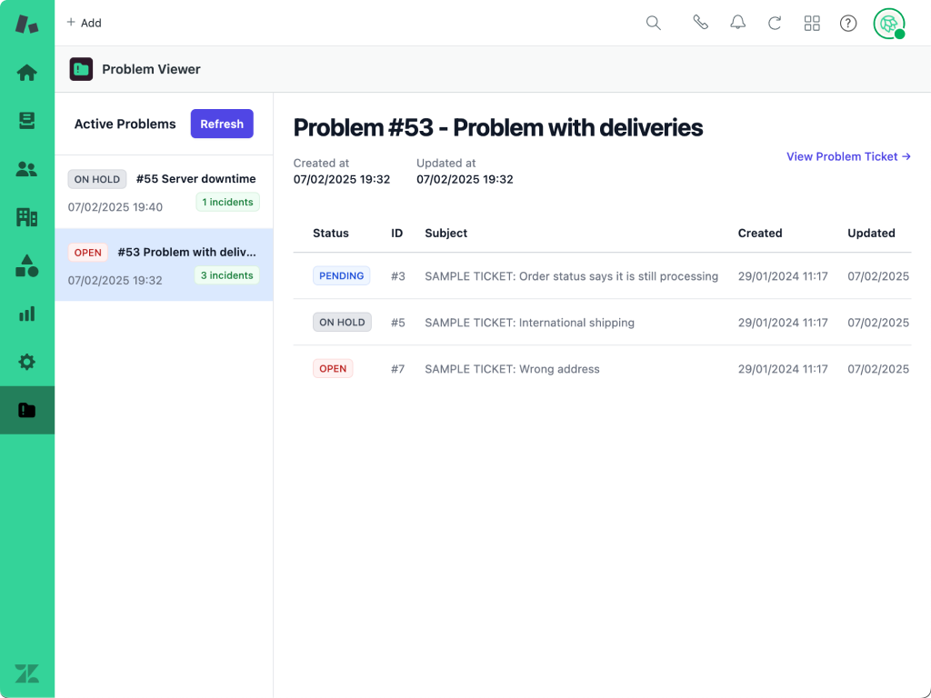 Get better insights in all active Problems in your Zendesk instance with the powerful Problem Viewer.