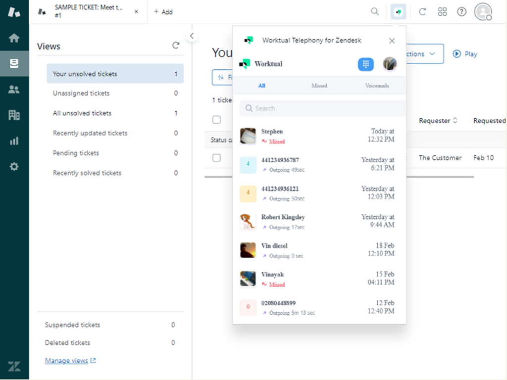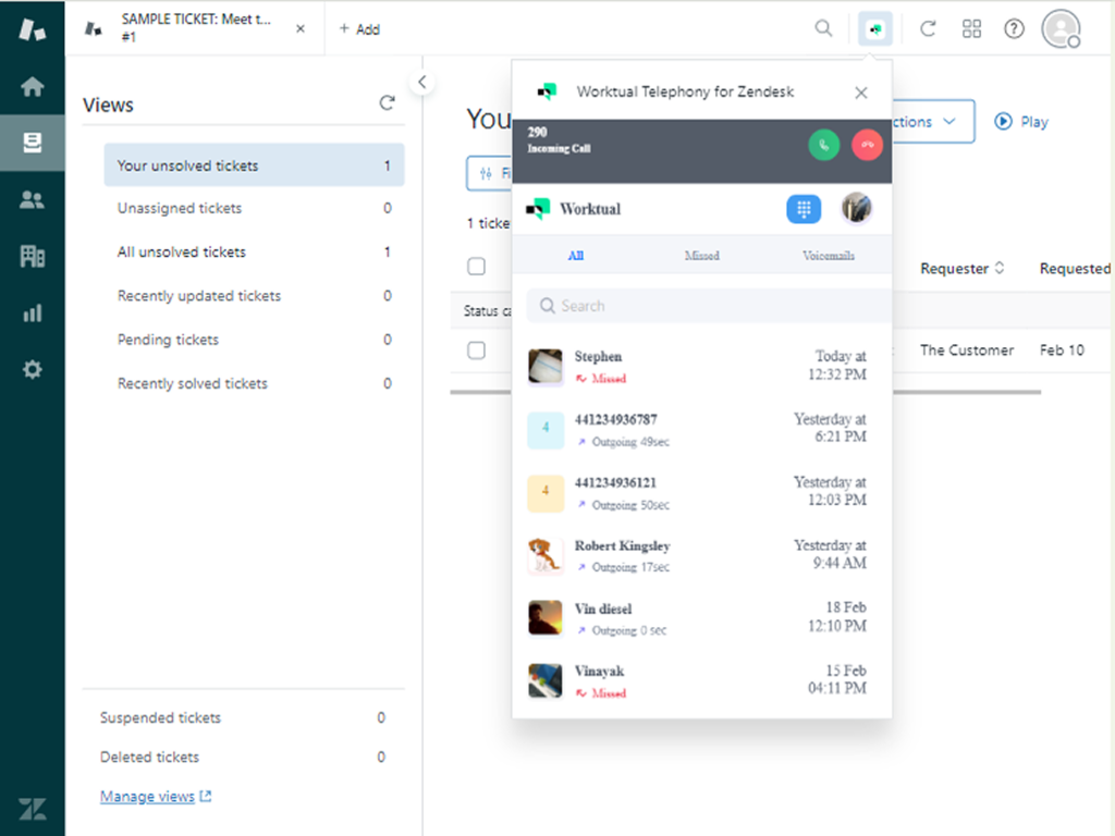 Worktual Telephony for Zendesk provides seamless integration to create a powerful business communications hub so that enterprise users can access the Worktual services (such as voicecall, call history) more easily, without leaving the Zendesk.