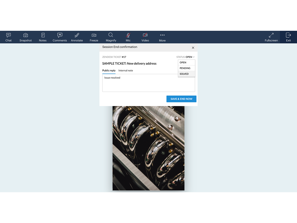 Seamless session management: Schedule and start remote assistance sessions directly from Zendesk tickets, reducing response times.