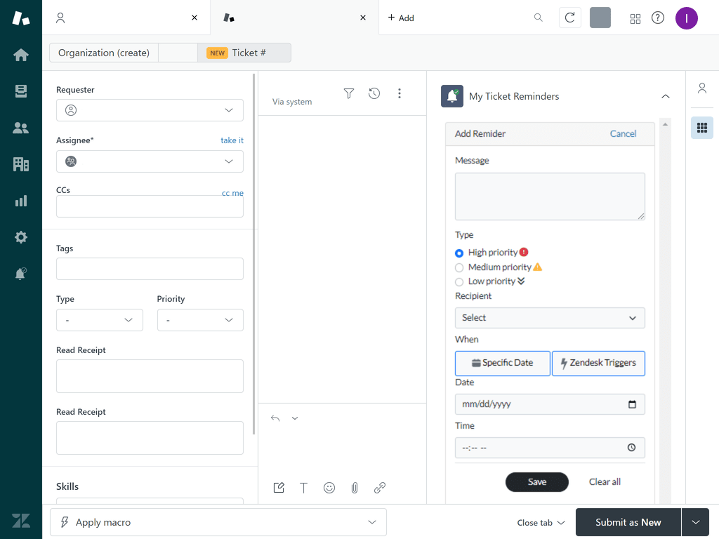 1. Personalize reminders : Create reminders for yourself or assign them to other agents for specific tickets.