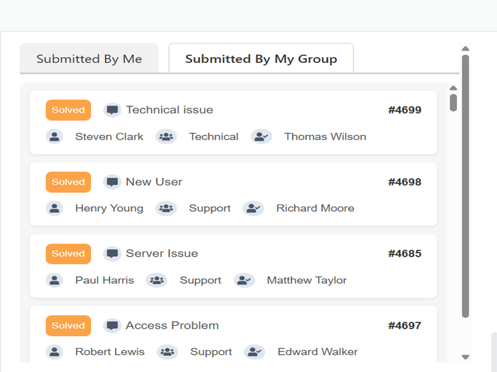 View and access all tickets submitted by you or anyone in your group — no permissions hassle. Full visibility, zero limitations.