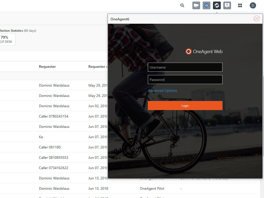 Refresh your Zendesk login session. The Oneagent app icon shows at the top right hand corner.