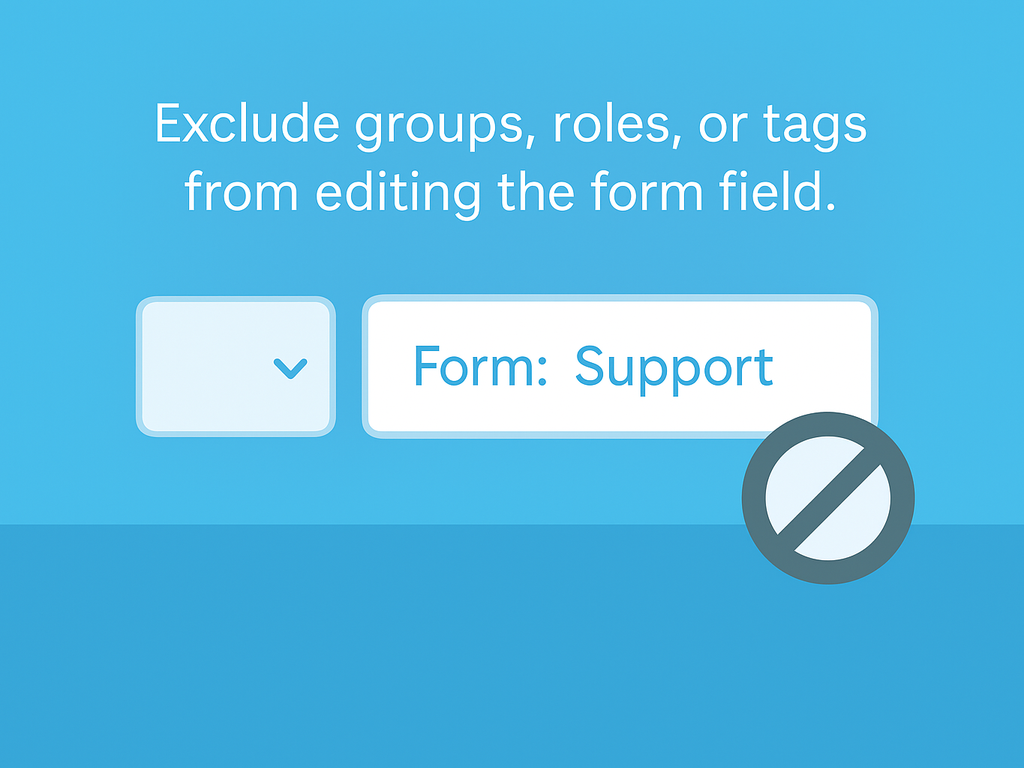 With a simple configuration in Zendesk Admin Center, you can:- Restrict form editing for selected groups, roles, or user tags.- Allow specific agents to edit forms using a whitelist tag override.- Show a minimal in-app indicator so agents know when form locking is active.- Automatically support both light and dark mode themes.