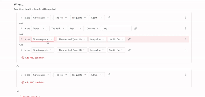 Let's imagine the following requirement: you only want assignees and admins to be able to edit a ticket status.In this case, create a rule like that: