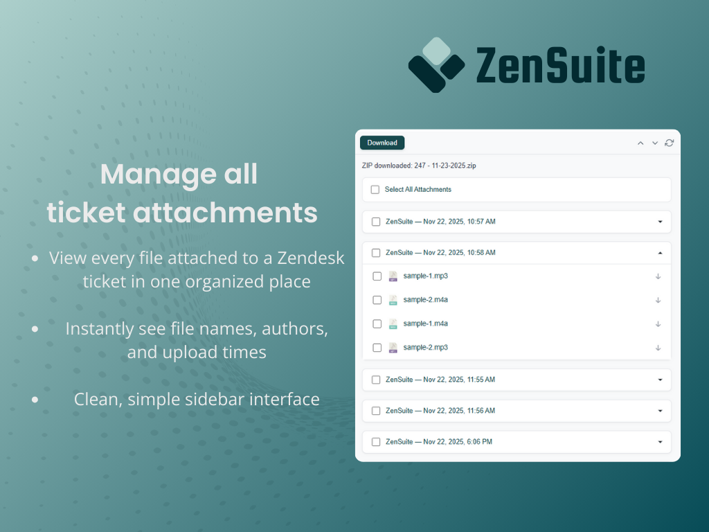 Attachment Manager is part of ZenSuite, a suite of practical Zendesk tools designed to improve support workflows.
