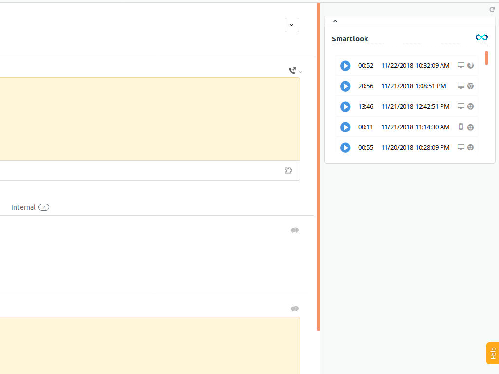 All done -> if the customer who submitted the ticket is found in Smartlook you can watch his recordings in Zendesk apps sidebar on the right.