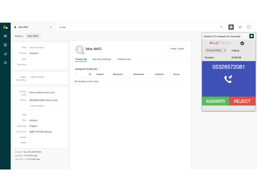 AloTech CTI Adapter provides seamless integration between Zendesk and AloTech Cloud Contact Center to enable greater customer satisfaction, improved agent productivity.