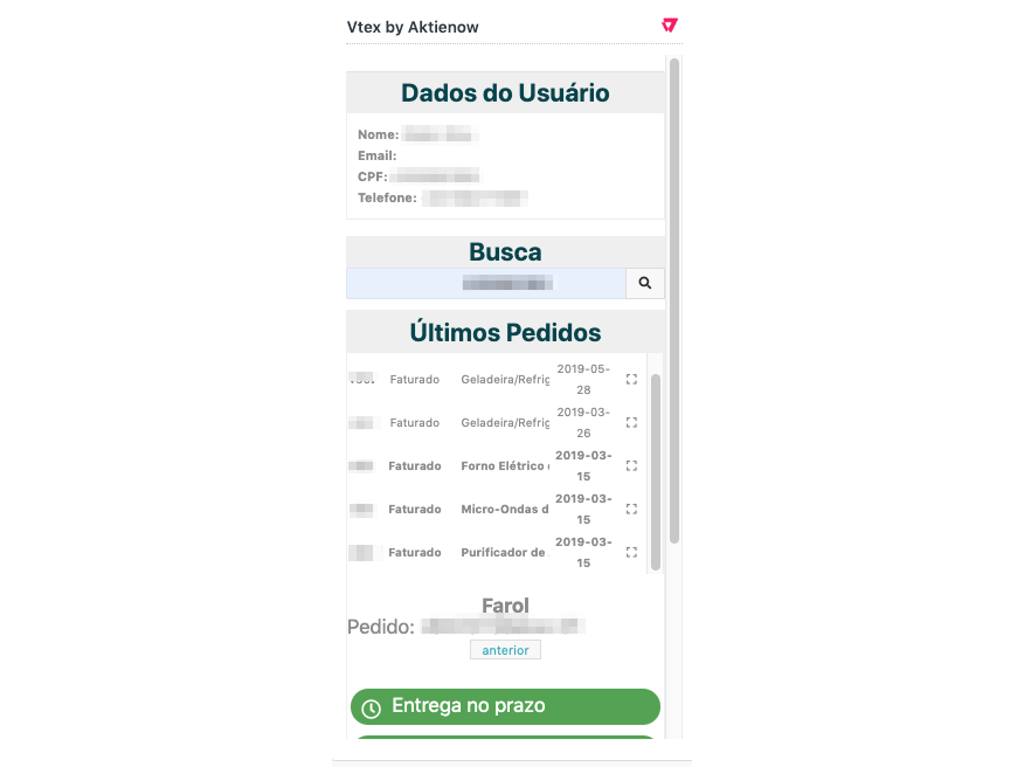 The app is used for managing the client's VTEX orders, through its api. Once the client provides his credentials to access the api (during installation), the app allows the Zendesk agents to search through all client's VTEX orders and visualize all its related infos. It also allows the option to cancel the orders.