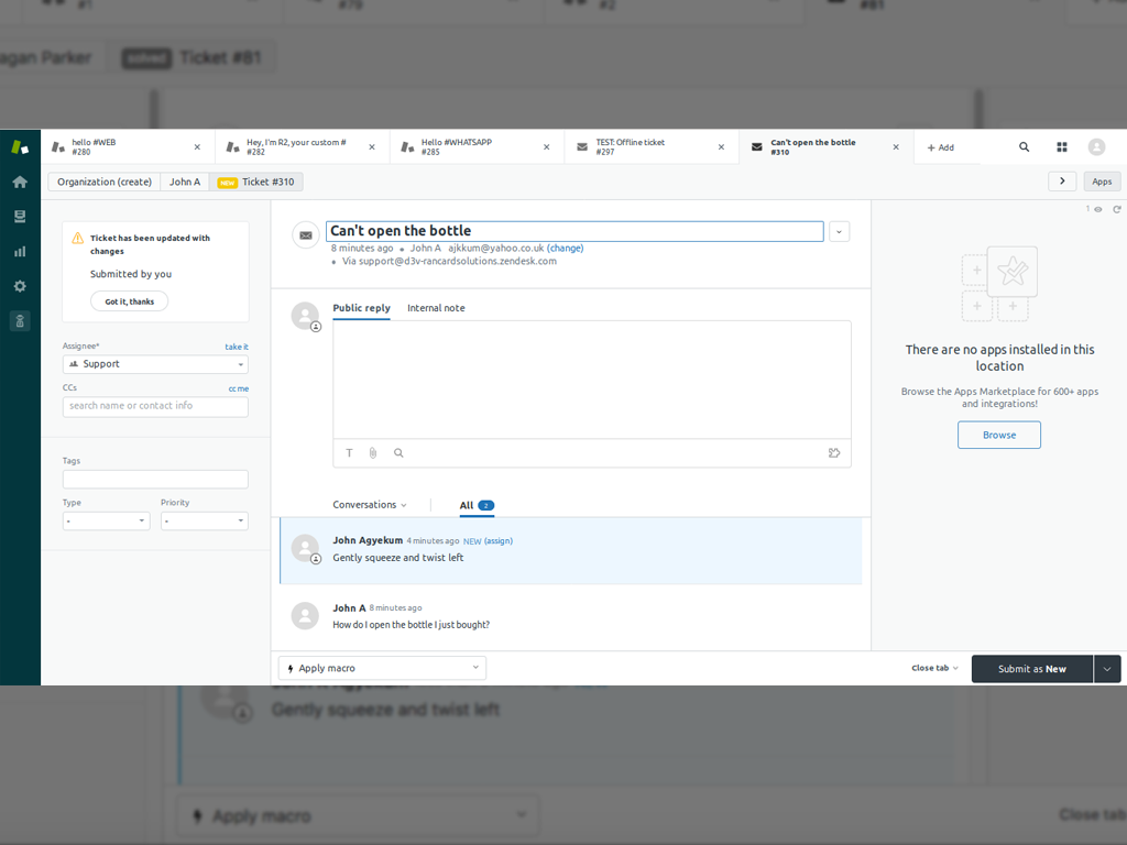 The app will now automatically respond to your customers requests or queries over the channels that you've selected.