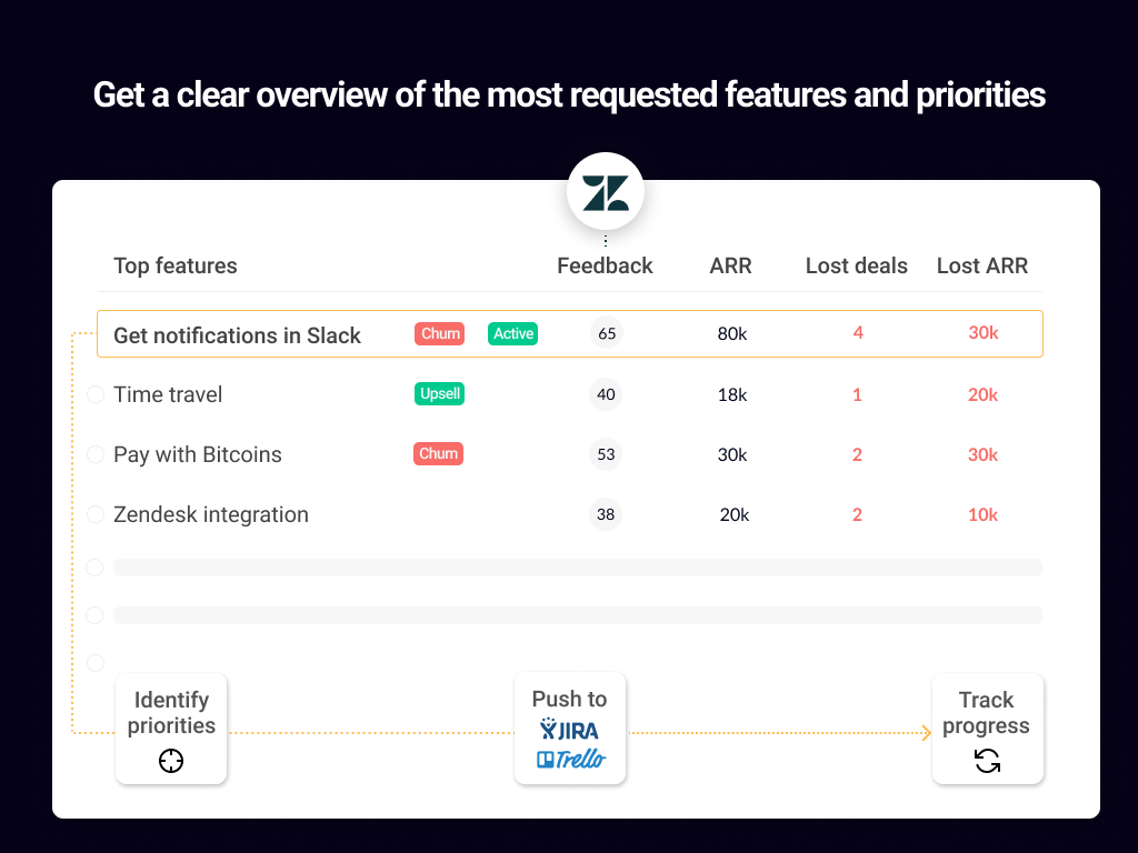 Combining the power of Zendesk and Harvestr enables support and product teams to: