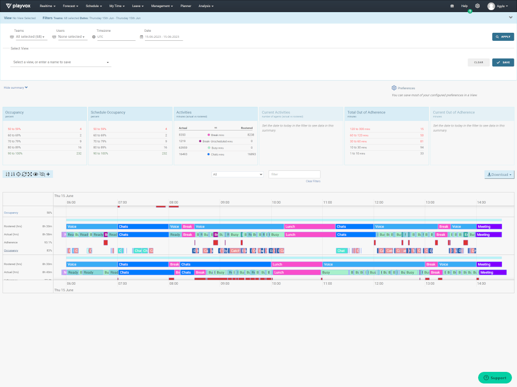 With Playvox, gain the visibility you need and deserve. No matter what today brings, our real-time forecasting helps you adjust and stay on track. Playvox provides a simple, interactive dashboard that covers the KPIs you need to master planning and performance including shrinkage, adherence, workstreams, occupancy, service levels, and forecast accuracy. Many out-of-the-box reports assist you in running your contact center more efficiently.