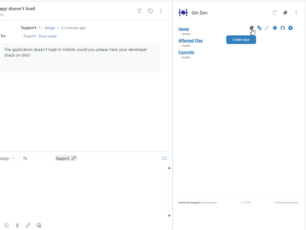 Stop juggling multiple platforms to track code fixes and ticket statuses. Git-Zen centralizes your support and development processes so you can focus on shipping great products.